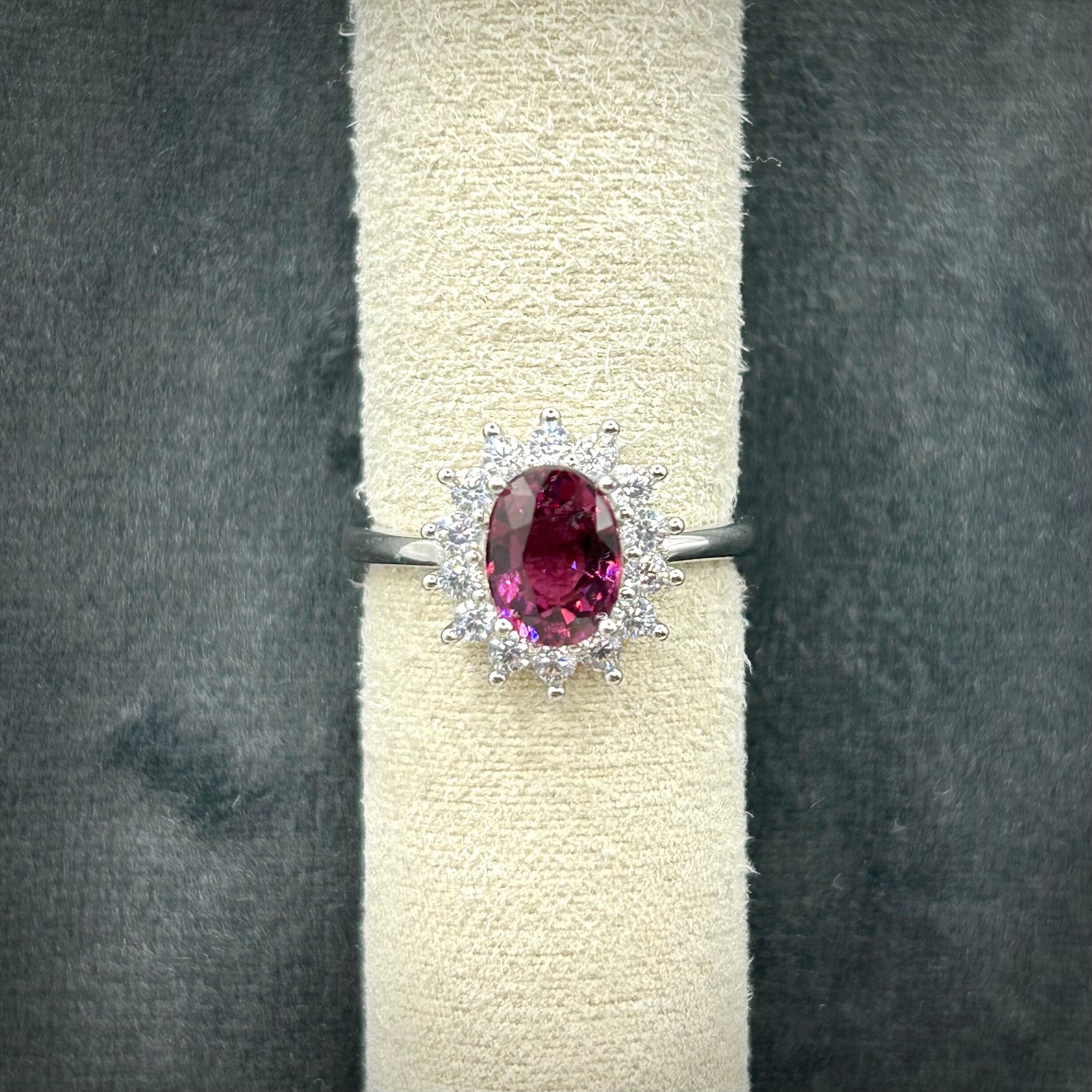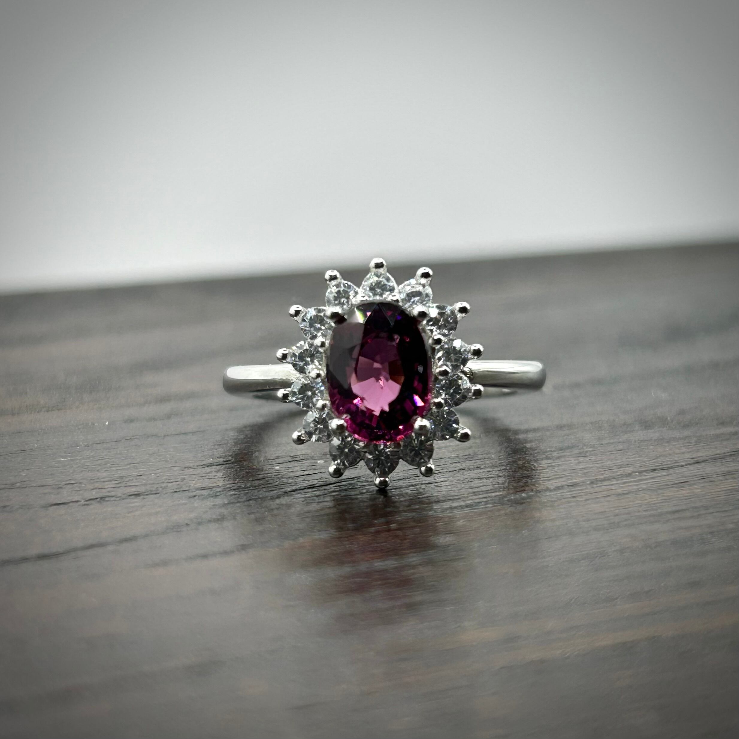 シルバー製 ロードライトガーネットのオーバルフラワーリング。