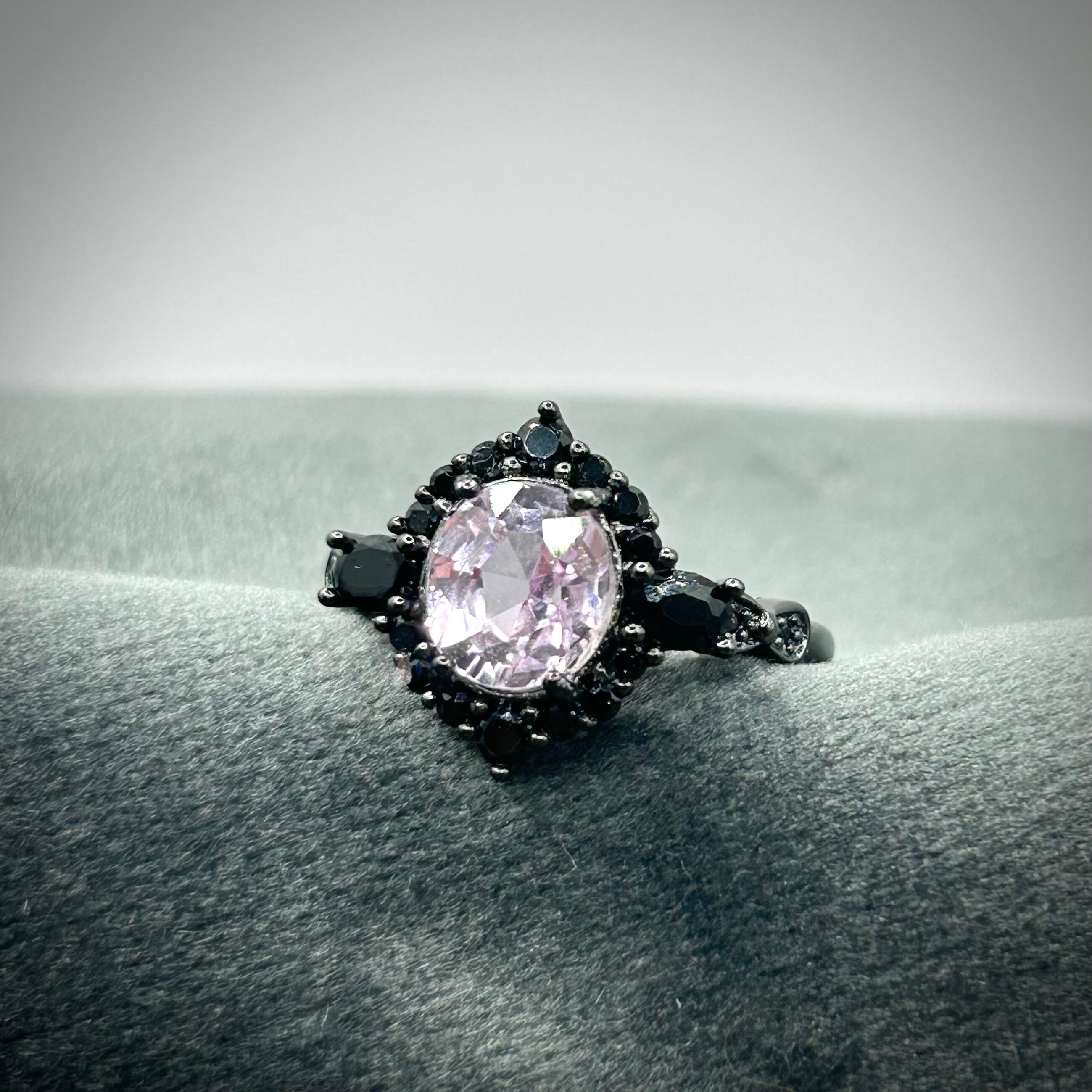 シルバー製ブラックカラー、クンツァイトのミッドナイトリング。